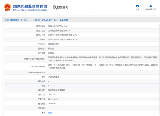 近日,河北愛能生物全資子公司河北柯瑞生物醫(yī)藥有限公司研發(fā)的膠原蛋白海綿獲批第三類醫(yī)療器械注冊證。作為公司首張“III類證”,必將大幅提升公司的綜合競爭力,同時也見證了公司發(fā)展的又一里程碑時刻。