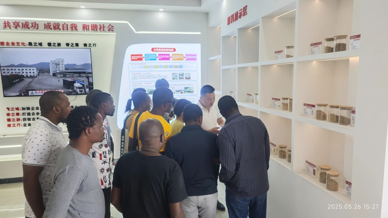 2025年5月26日,在懷化職業(yè)技術(shù)學(xué)院張光有老師的帶領(lǐng)下,來自非洲國家馬拉維的10名農(nóng)業(yè)技術(shù)培訓(xùn)班學(xué)員來到湖南九鼎科技(集團(tuán))有限公司子公司-懷化九鼎參觀交流。此次交流活動(dòng)旨在促進(jìn)中非農(nóng)業(yè)技術(shù)交流與合作,雙方圍繞大宗原料采購、飼料生產(chǎn)工藝及質(zhì)量管控展開深入溝通與交流。